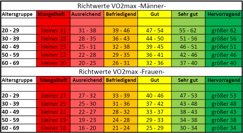 Je höher der Wert desto besser ist der Fitnesslevel.